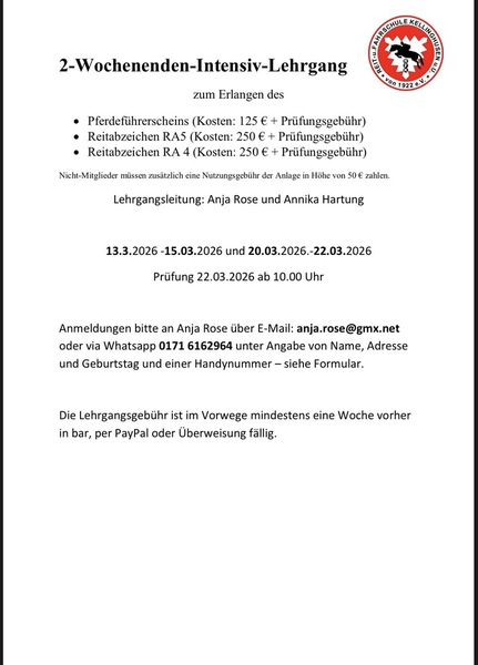 13.03. - 15.03. 1. Teil Lehrgang Pferdeführerschein, RA4 und RA5