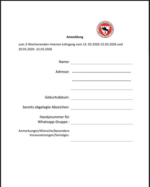 Anmeldung 2 Wochen Intensiv Lehrgang (13.03.-15.03. + 20.03.-22.03.)